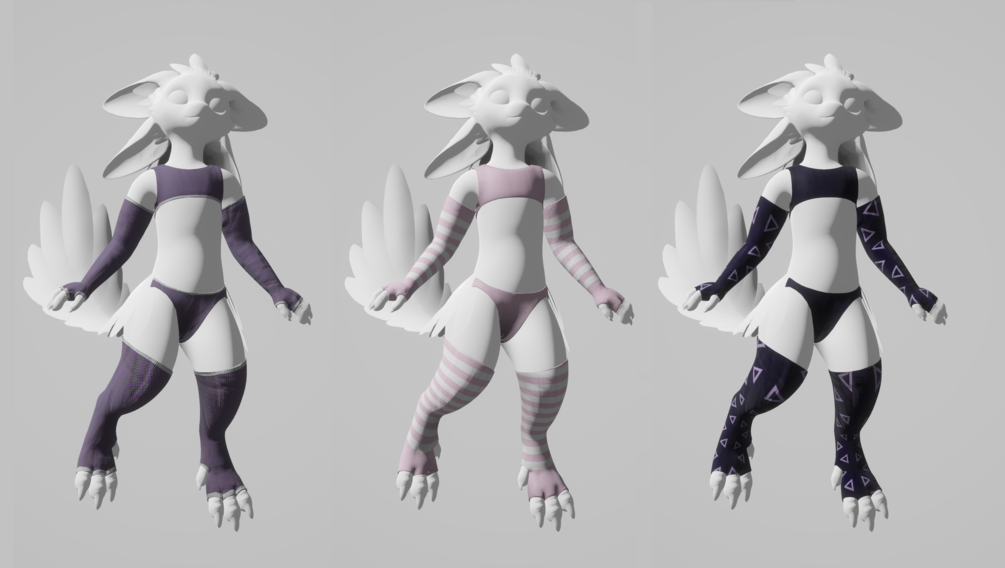 3 types of styles, femboyish leggings, arm sleeves, pants, and a top.